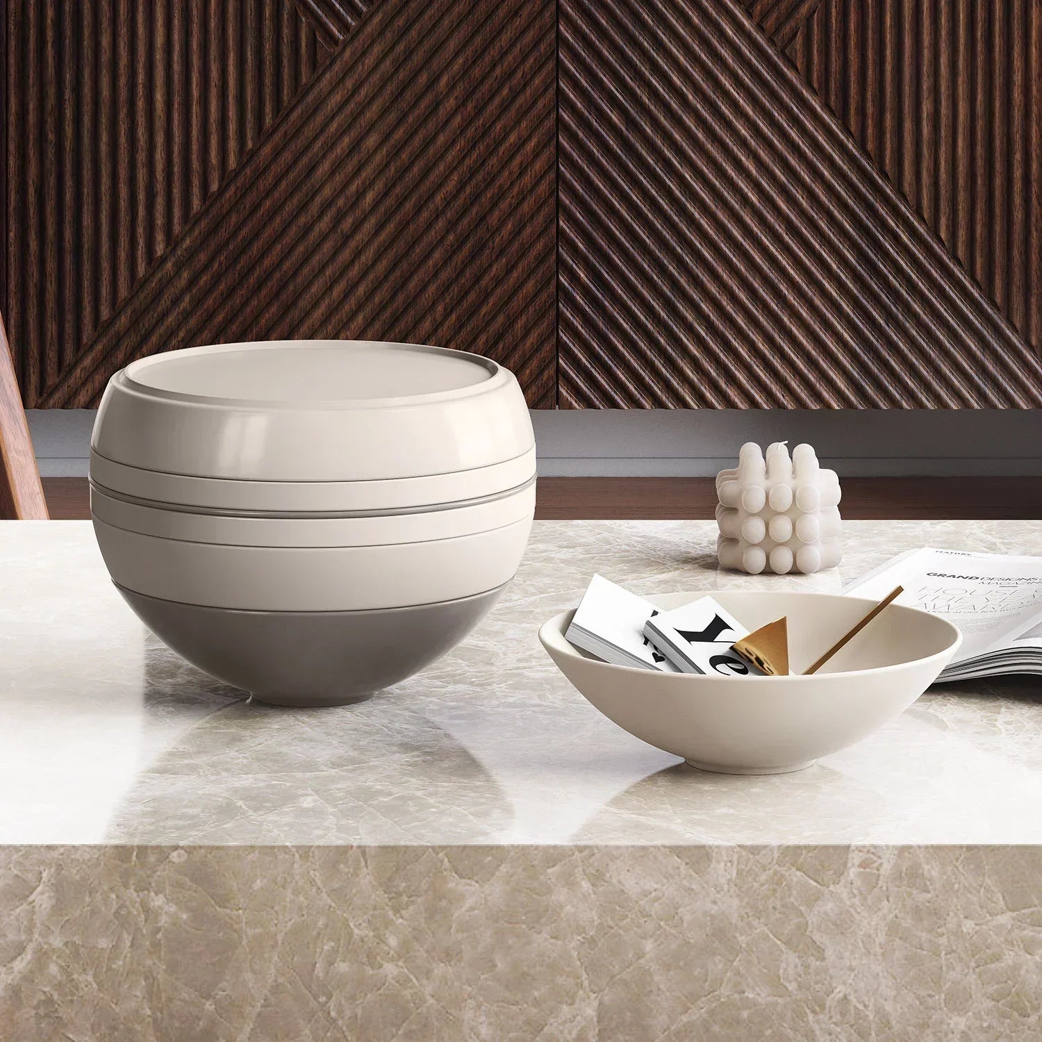 Criado pela primeira vez em 1971 pela designer Von Boch, o design do conjunto de itens La Boule foi revolucionário e muito à frente de seu tempo.