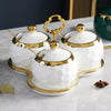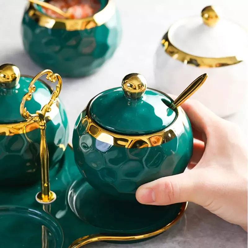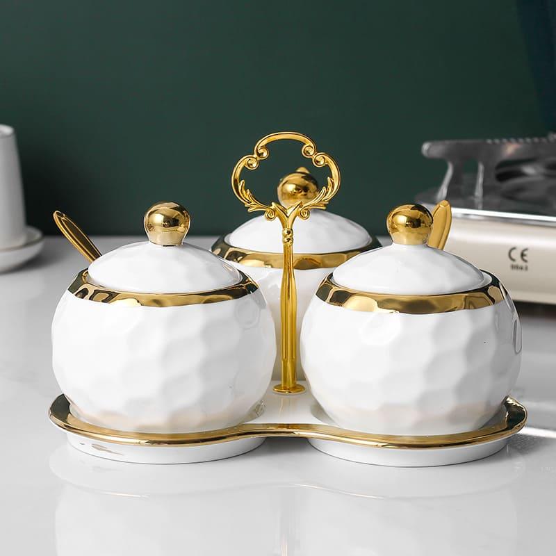 O Conjunto de Potes de Cerâmica Kit Açucareiro/Saleiro é ideal para armazenar e decorar sua cozinha. Composto por 3 potes com tampa e colher, é perfeito para guardar grãos, temperos, açúcar e especiarias. O design em branco e dourado traz sofisticação, unindo funcionalidade e beleza para suas refeições.