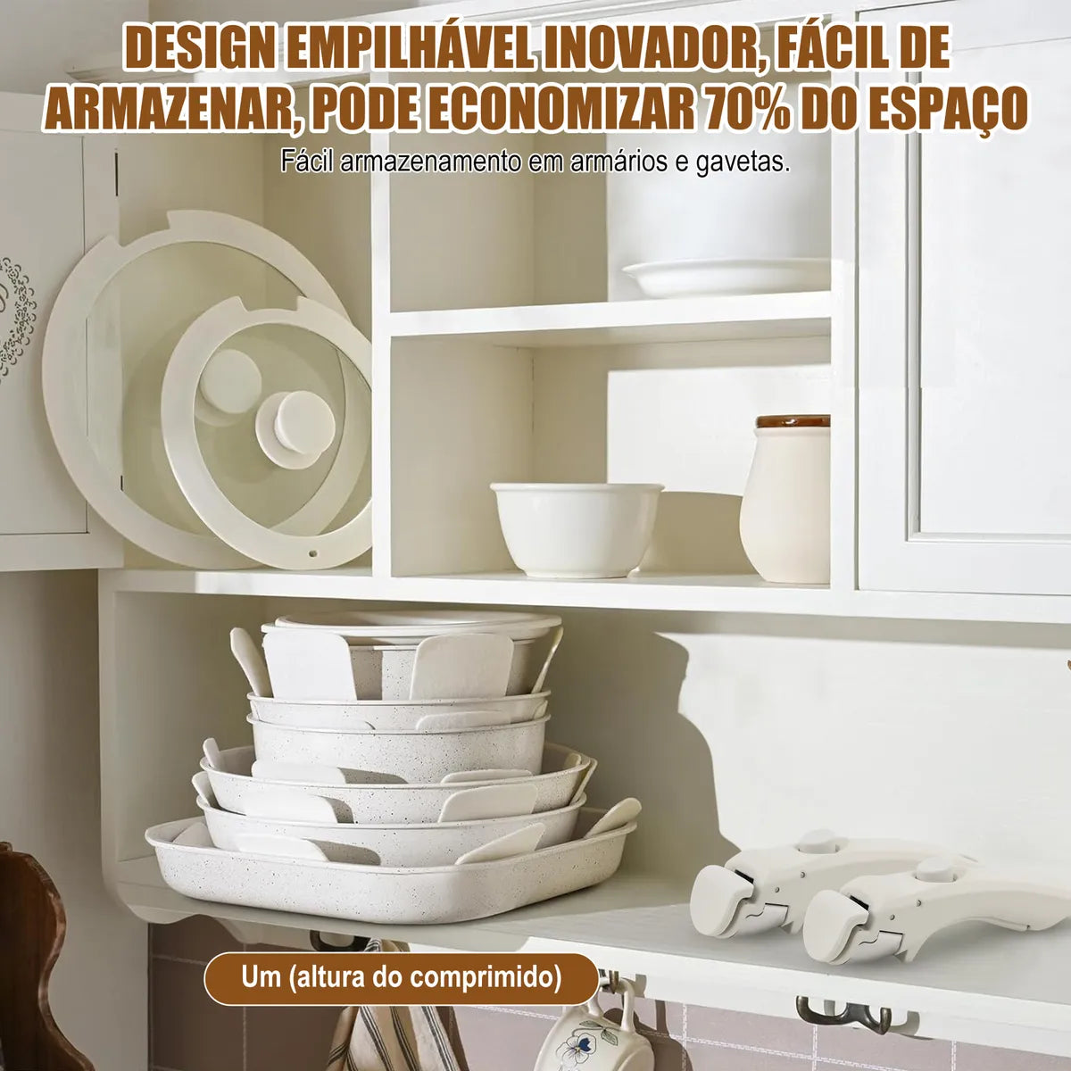 ✅ Versatilidade que você sente na rotina: Sirva, cozinhe, leve ao forno ou guarde na geladeira — tudo isso com o mesmo conjunto, graças ao cabo removível que se encaixa em todas as peças com apenas um clique.